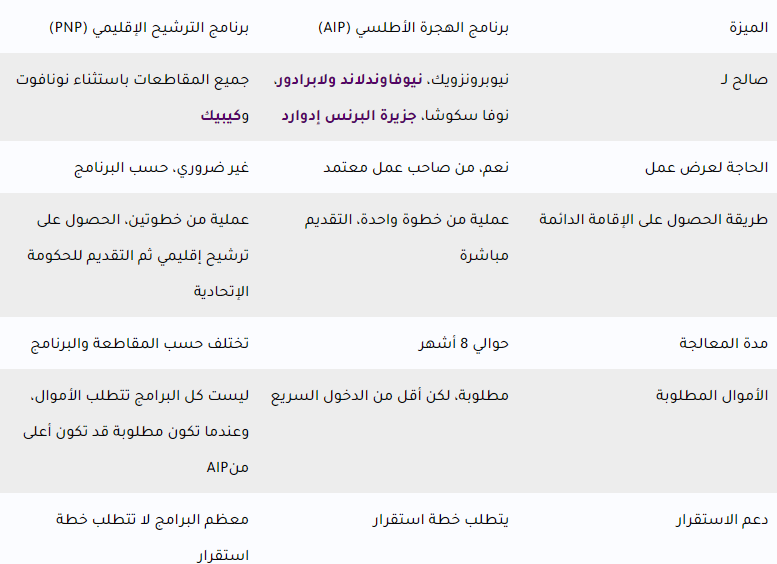 الفرق بين برنامج الهجرة الأطلسي وبرامج الترشيح الإقليمية (PNP)